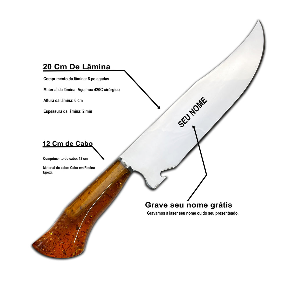 Personalização Exclusiva: Adicione um toque especial com a gravação do seu nome, tornando esta faca personalizada um item único e cheio de significado.