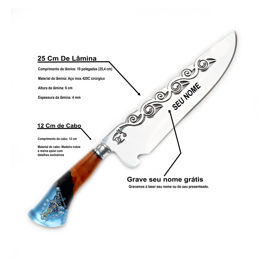 Personalização Exclusiva: Adicione um toque especial com a gravação do seu nome, tornando esta faca personalizada um item único e cheio de significado.